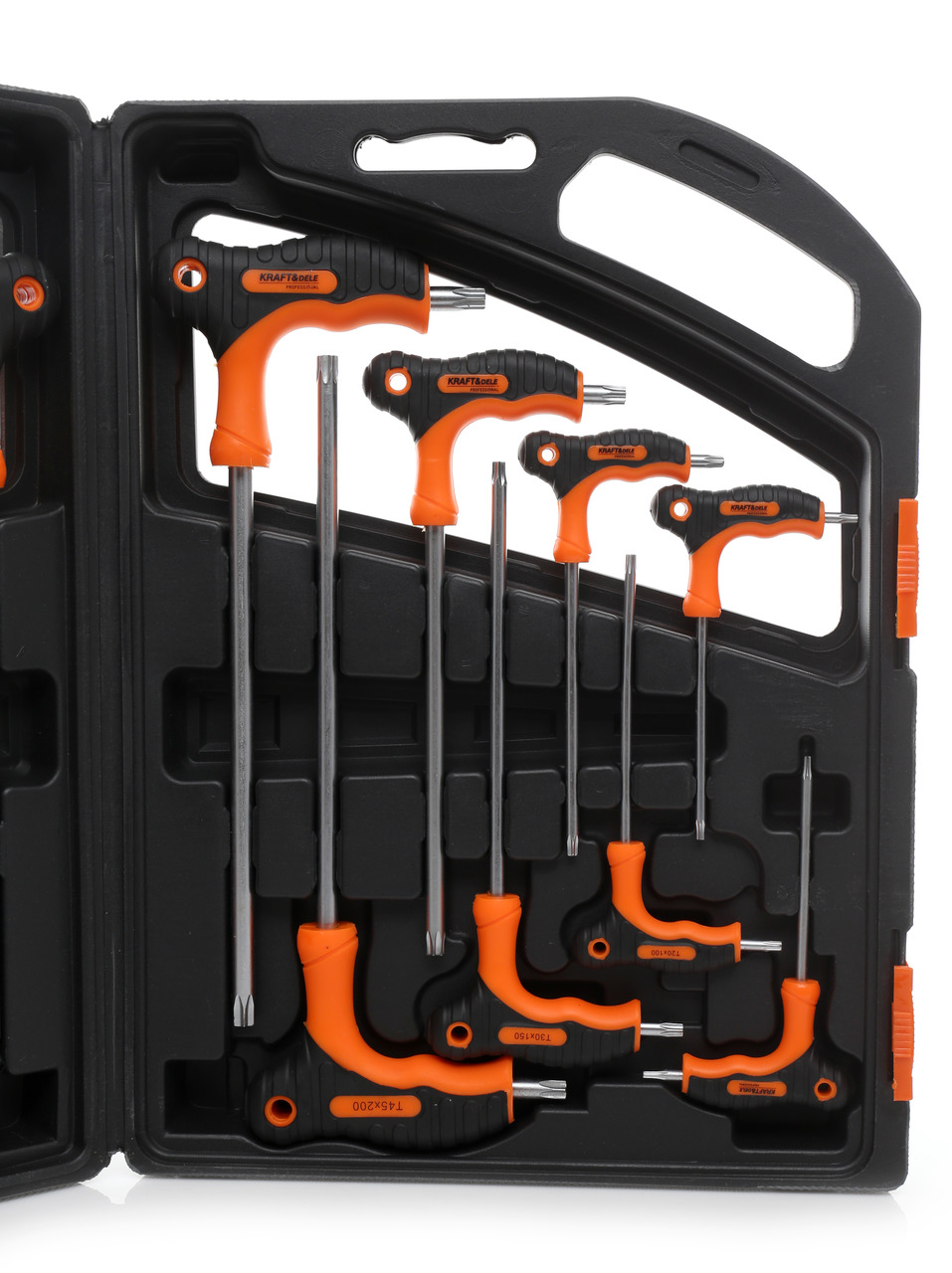 Set izvijačev KD10907 znamke Kraft&Dele je idealen za vsako garažo ali delavnico. Priložena kovček olajša shranjevanje izvijačev.
