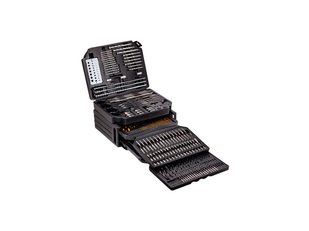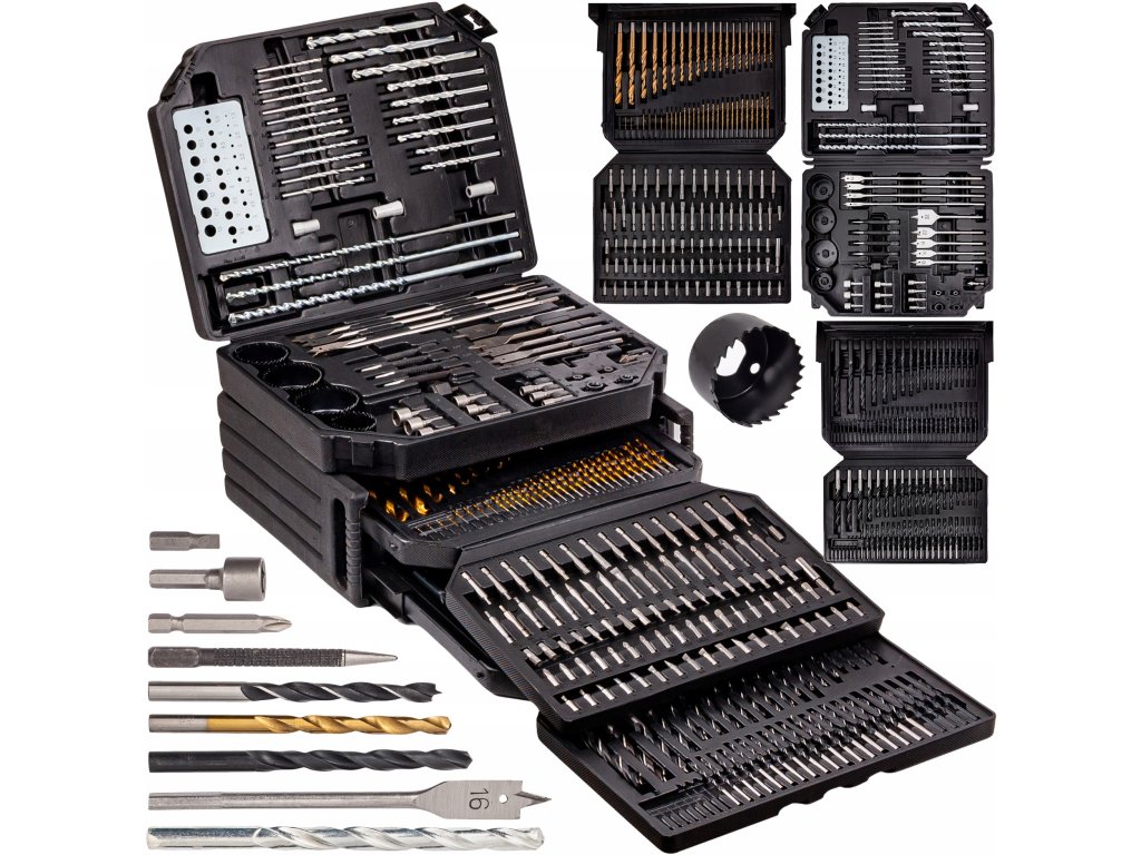 Profesionalni komplet, ki vsebuje 300 elementov, idealen za vse vrtalne, sekalne in vijačne naloge. Ta komplet je primeren tako za profesionalce kot za domače mojstre. Vse je urejeno v funkcionalnem plastičnem kovčku, ki olajša shranjevanje in prenašanje.