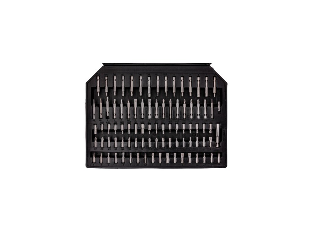 - Biti: Širok izbor ravnih, križnih (PH, PZ), imbus (HEX), kvadratnih (S) in torx bitov (T) z dolžino 25 mm in 50 mm.