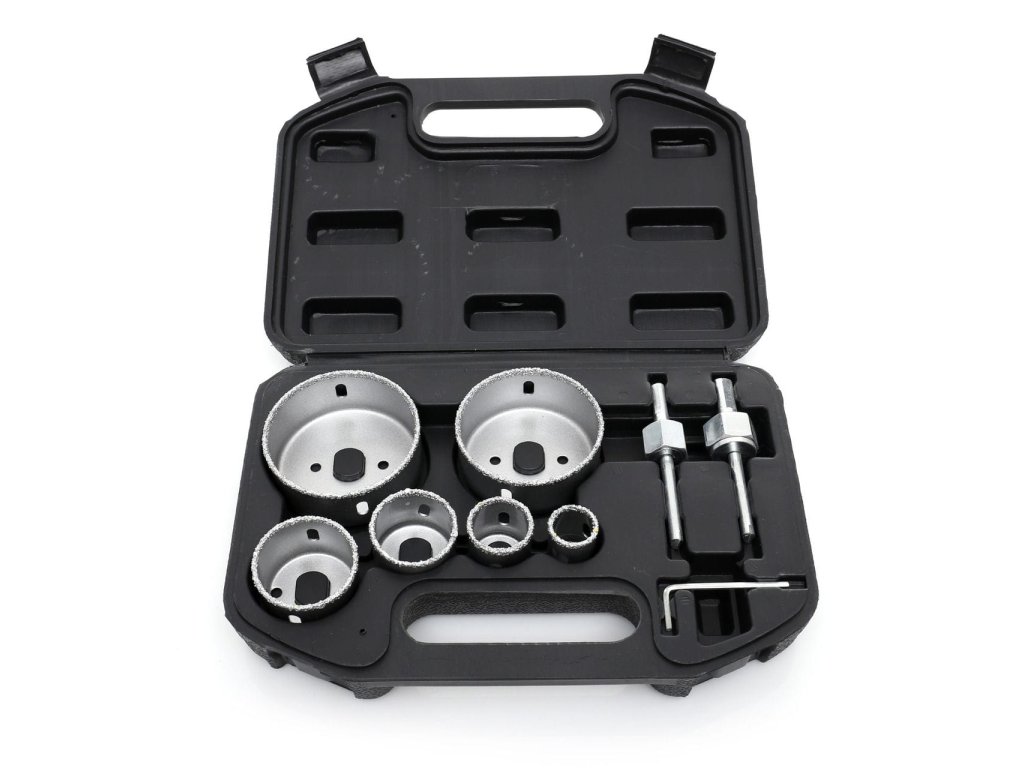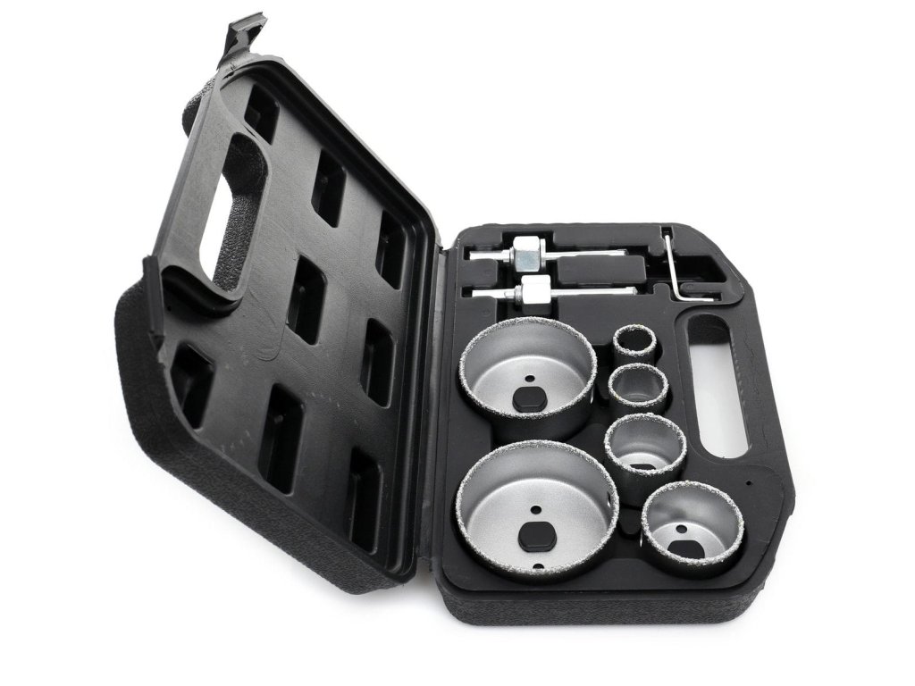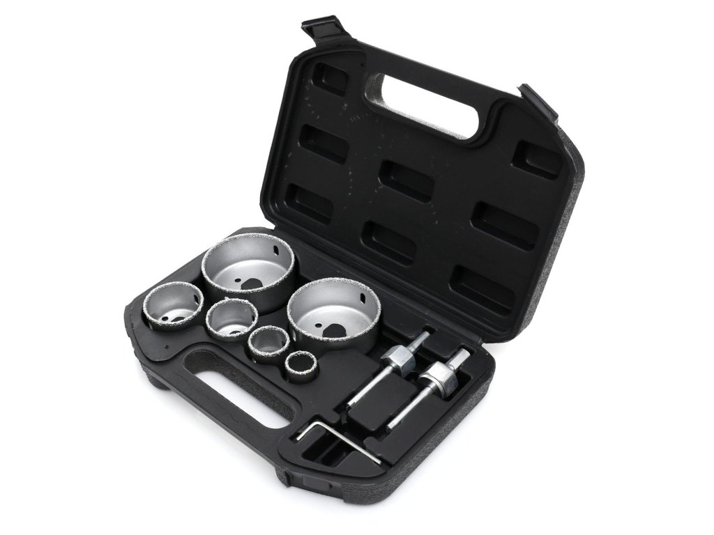 Komplet KD10285 vsebuje 6 izvrtalnikov velikosti: 22, 29, 38, 44, 67, 73 mm, imbus ključ in dva adapterja z vrtalnikom.