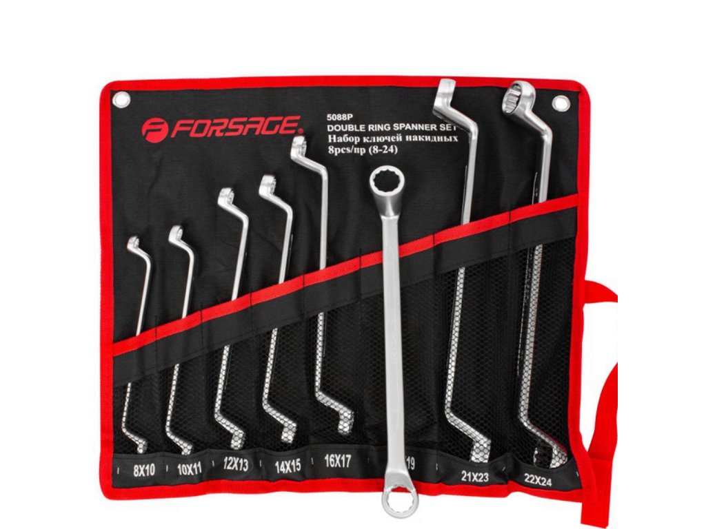 Set upognjenih obročastih ključev 8 kos, 8–24 mm, CrV
