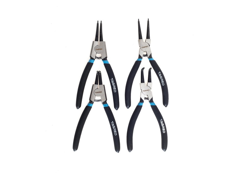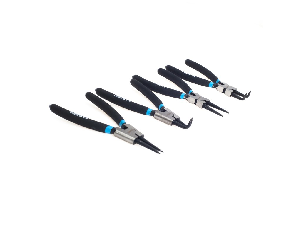 Komplet klešč SEGERA je idealna rešitev za delo z notranjimi in zunanjimi vzmetnimi obroči. Vsebuje tako ravne kot ukrivljene klešče, kar olajša rokovanje in menjavo zadržkov. Ta profesionalni komplet vključuje dve vrsti klešč: notranje (razpiranje znotraj ohišja) in zunanje (stezanje na zunanjem robu gredi).