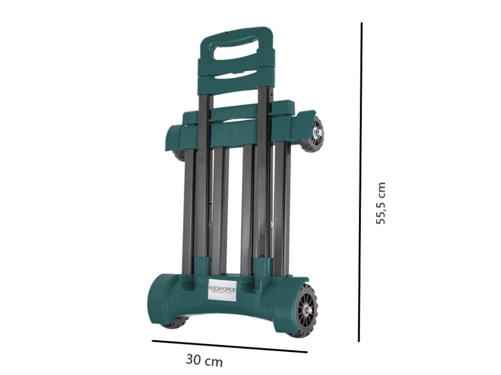 Vzdržljiv in univerzalen transportni voziček Rockforce z največjo nosilnostjo 50 kg je nepogrešljiv v vsaki trgovini, garaži, skladišču in na vseh mestih, kjer je potrebno prevažati blago.