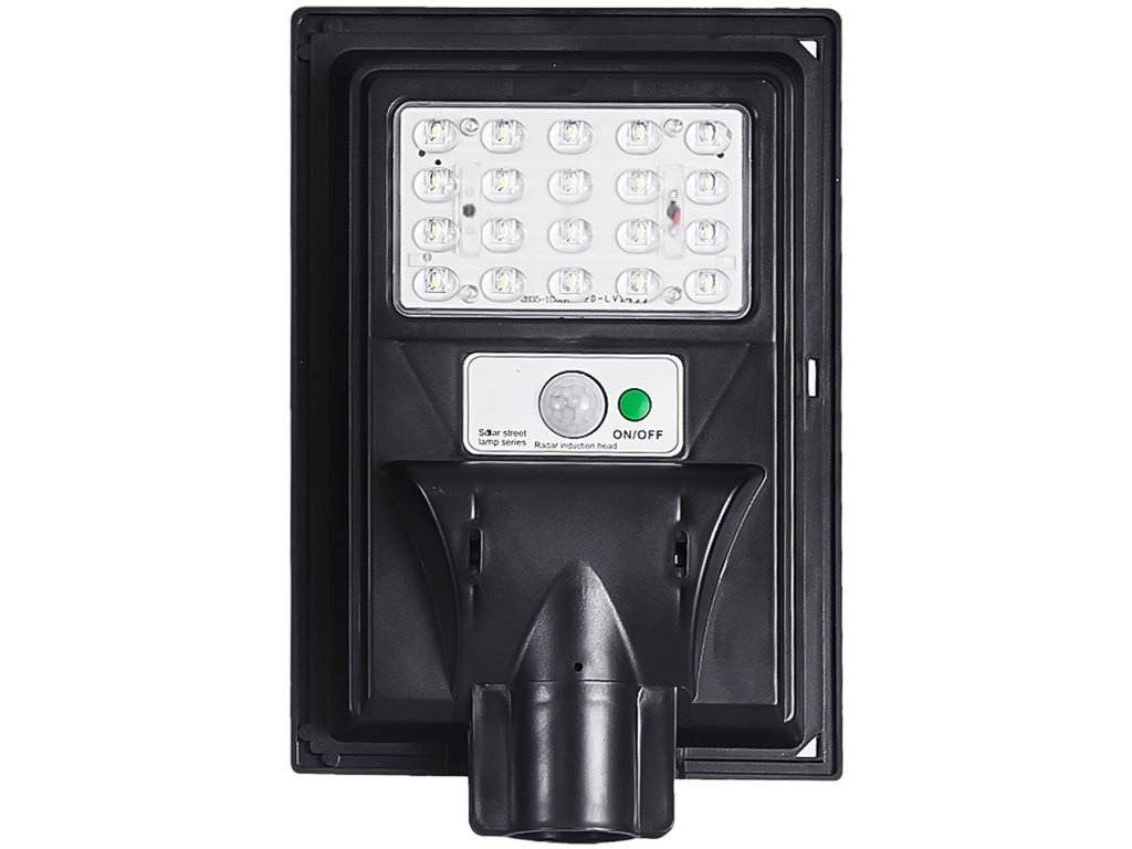 Solarna zunanja svetilka 200W. Na vrhu svetilke je nameščen sončni panel, ki čez dan zbira sončno energijo, ki se shranjuje v vgrajeno baterijo. Po temi svetilka uporablja prej zbrano energijo za napajanje LED diod in osvetlitev. Vgrajeni senzor gibanja in senzor teme zagotavljata, da se svetilka prižge le, ko je to potrebno. Kombinacija senzorjev omogoča delovanje svetilke samo v temi, če je zaznano gibanje. Svetilka ima tri načine delovanja, ki se razlikujejo po intenzivnosti svetlobe. V paketu je IR daljinski upravljalnik za brezžično upravljanje funkcij svetilke. Svetilka izpolnjuje zaščitni razred IP65 in je namenjena za uporabo na prostem.