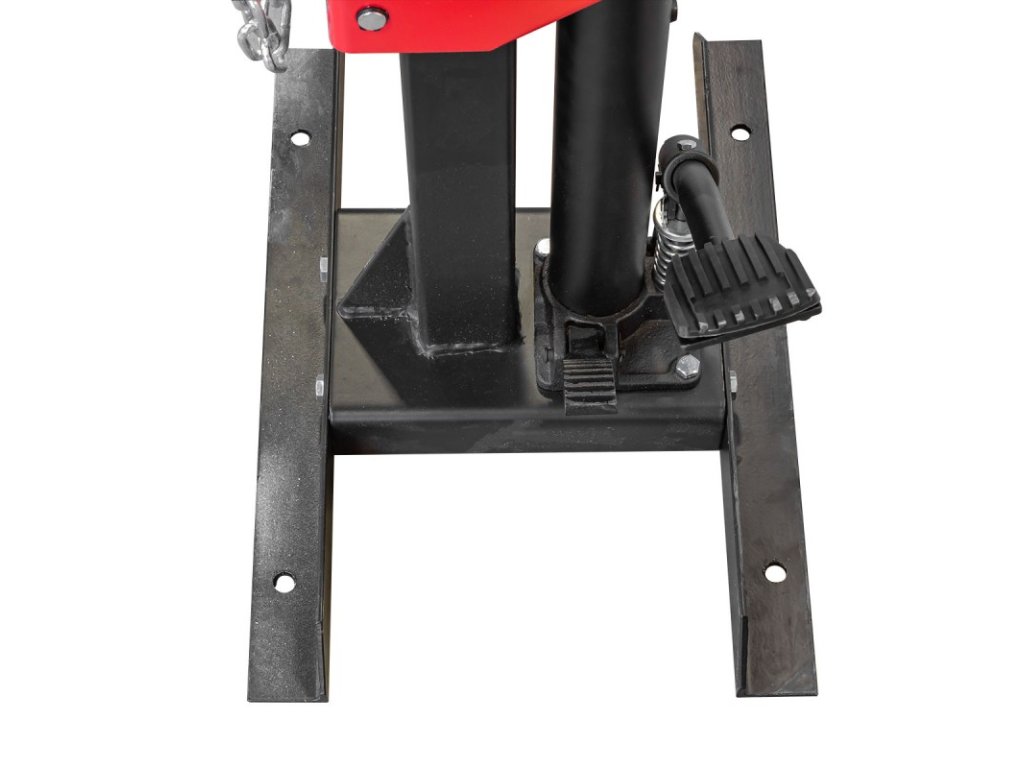 Upravljanje stiskalnika temelji na hidravličnem cilindru, ki ga upravljata dve nožni ročici – ena za dvig bata cilindra, druga za nadzorovano spuščanje.