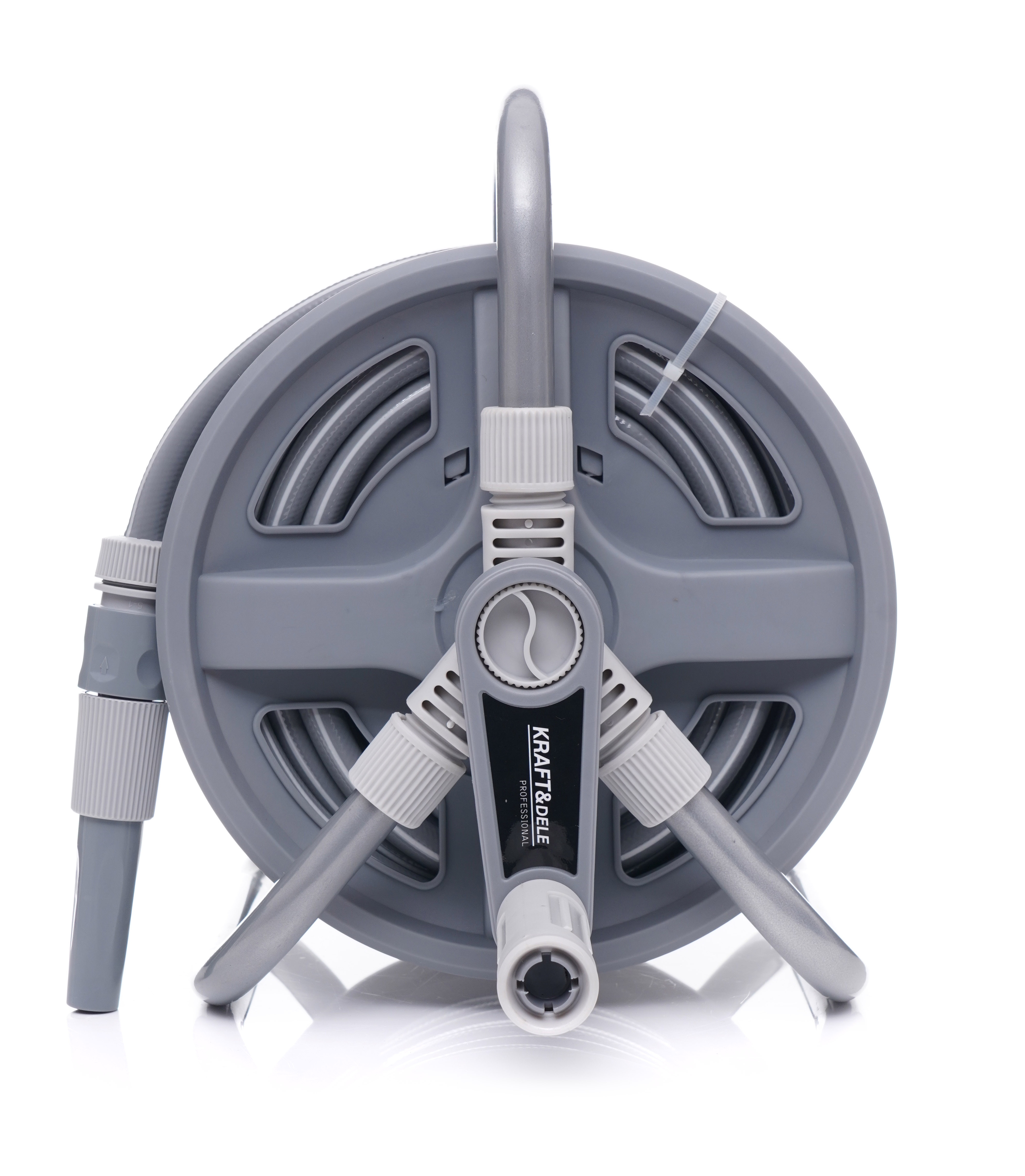 Stojan z vrtno cevjo znamke Kraft&Dele model KD2080 je idealna naprava za vrtnarje, ki cenijo hitro in brezskrbno zalivanje. Stojan je izdelan iz kakovostnega aluminija, zaradi česar je odporen proti koroziji in hkrati lahek. Cev dolžine 40 m in premera 1/2" (3-slojna) je izdelana iz PVC materiala, odpornega proti UV žarkom.