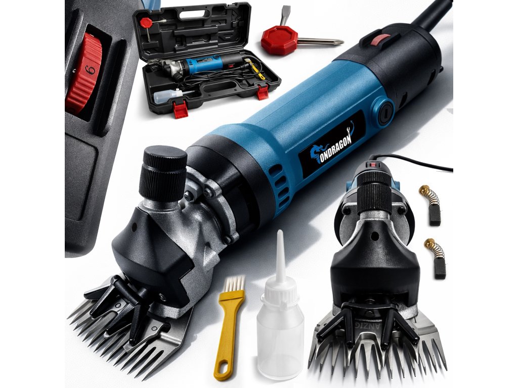 Zmognostni strižni stroj namenjen za redno in zahtevno striženje kmetijskih in domačih živali. Zaradi močnega motorja, kakovostnih rezil iz kaljene jeklene in neprekinjenega uravnavanja moči omogoča hitro, natančno in udobno delo tudi pri živalih z gosto ali grobo dlako. Robustna konstrukcija, učinkovito zračno hlajenje in dolg napajalni kabel ga naredijo zanesljivo orodje za vsako kmetijo.