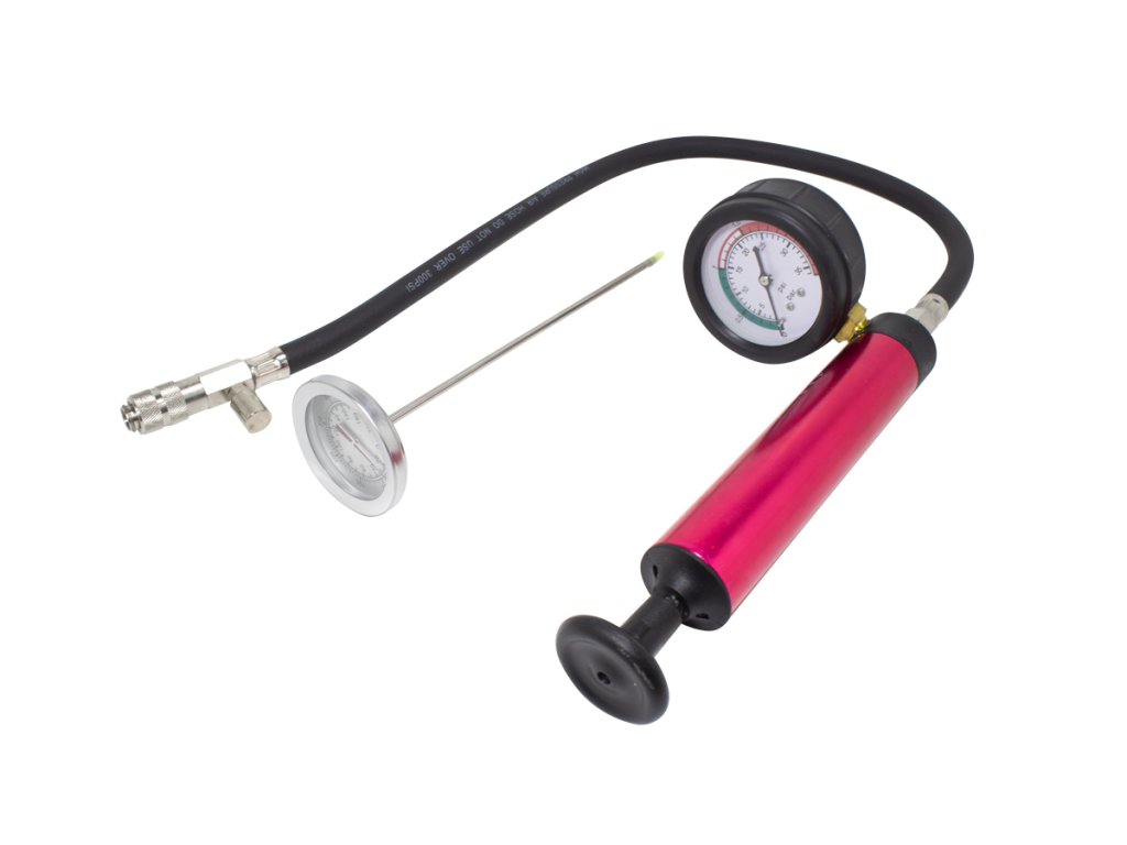 Komplet služi za preverjanje in kontrolo tesnosti hladilnega sistema in ogrevanja pri osebnih, dostavnih in tovornih vozilih.