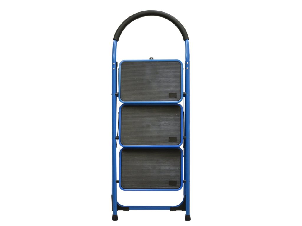 3-stopenjska zložljiva lestev G02436 je idealen pomočnik za vsa dela na višini. Ta aluminijasta zložljiva lestev je praktična in stilska zaradi kombinacije modre barve s črnimi elementi, ki ji dajejo eleganten videz.