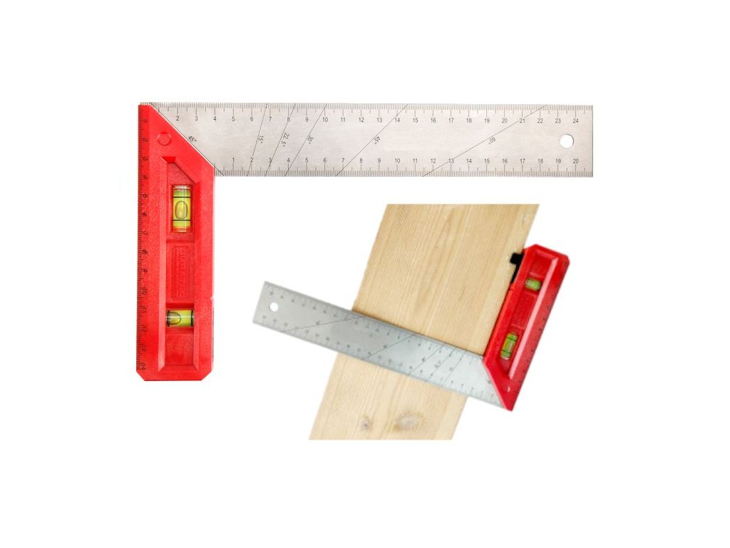 Kotnik iz trdnega aluminija, model KD10725 znamke Kraft&Dele. Tesarski in gradbeni kotnik z vodno tehtnico za vsakega mojstra omogoča natančno merjenje.