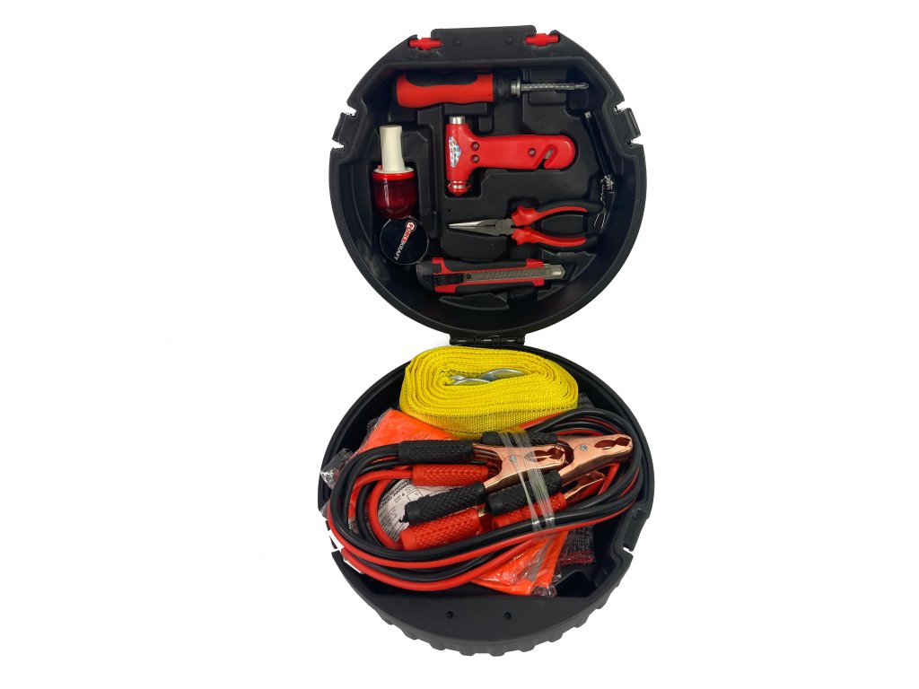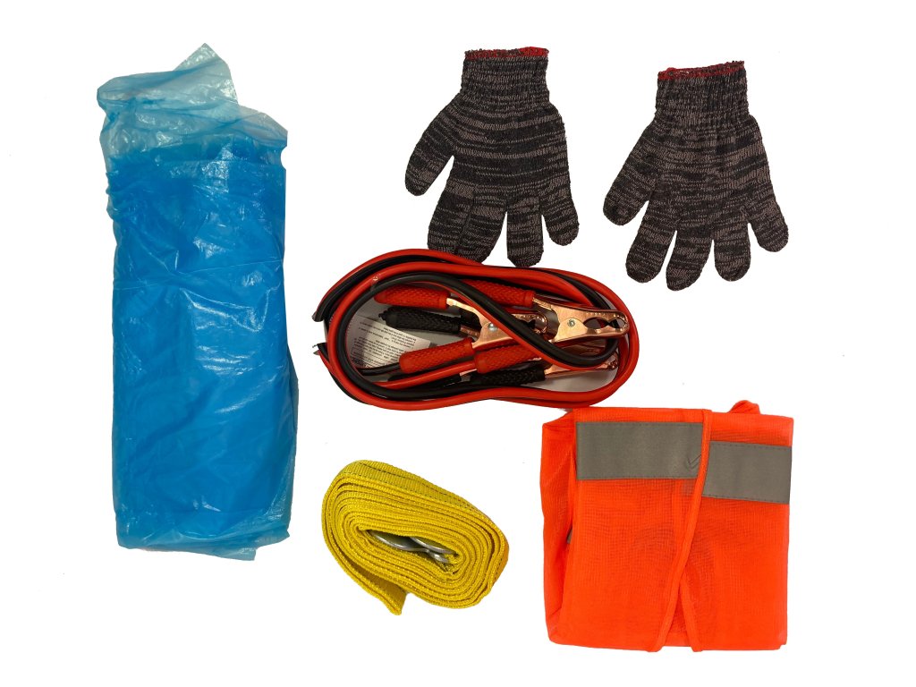 Univerzalni komplet za avto – vlečna vrv/dvigalo/odsevni telovnik, 14 kosov