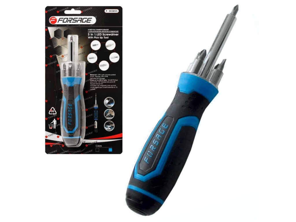 Univerzalni izvijač 5 v 1 z magnetom in osvetlitvijo
