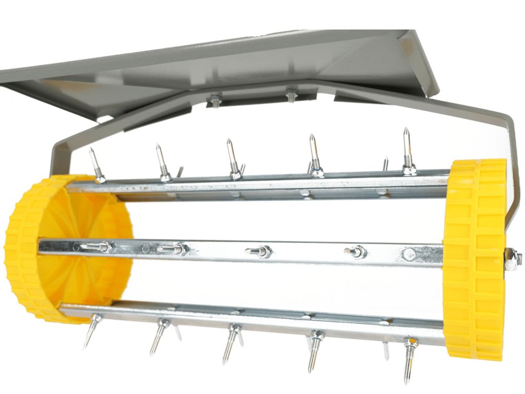 Prezračevalnik je sestavljen iz valja z enakomerno razporejenimi konicami, vodilnih koles, zaščitnega pokrova in zložljive 3-delne račna, ki zagotavlja enostavno rokovanje in shranjevanje.