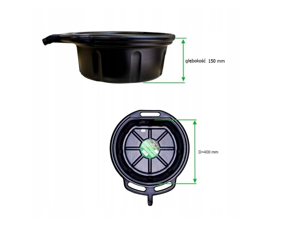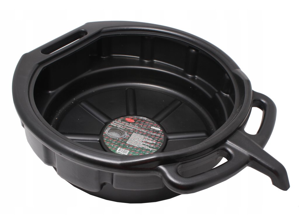 Robustna in odporna posoda, primerna za menjavo motornega olja ali hladilne tekočine v avtomobilu. Opremljena z ročaji za enostavno prenašanje.