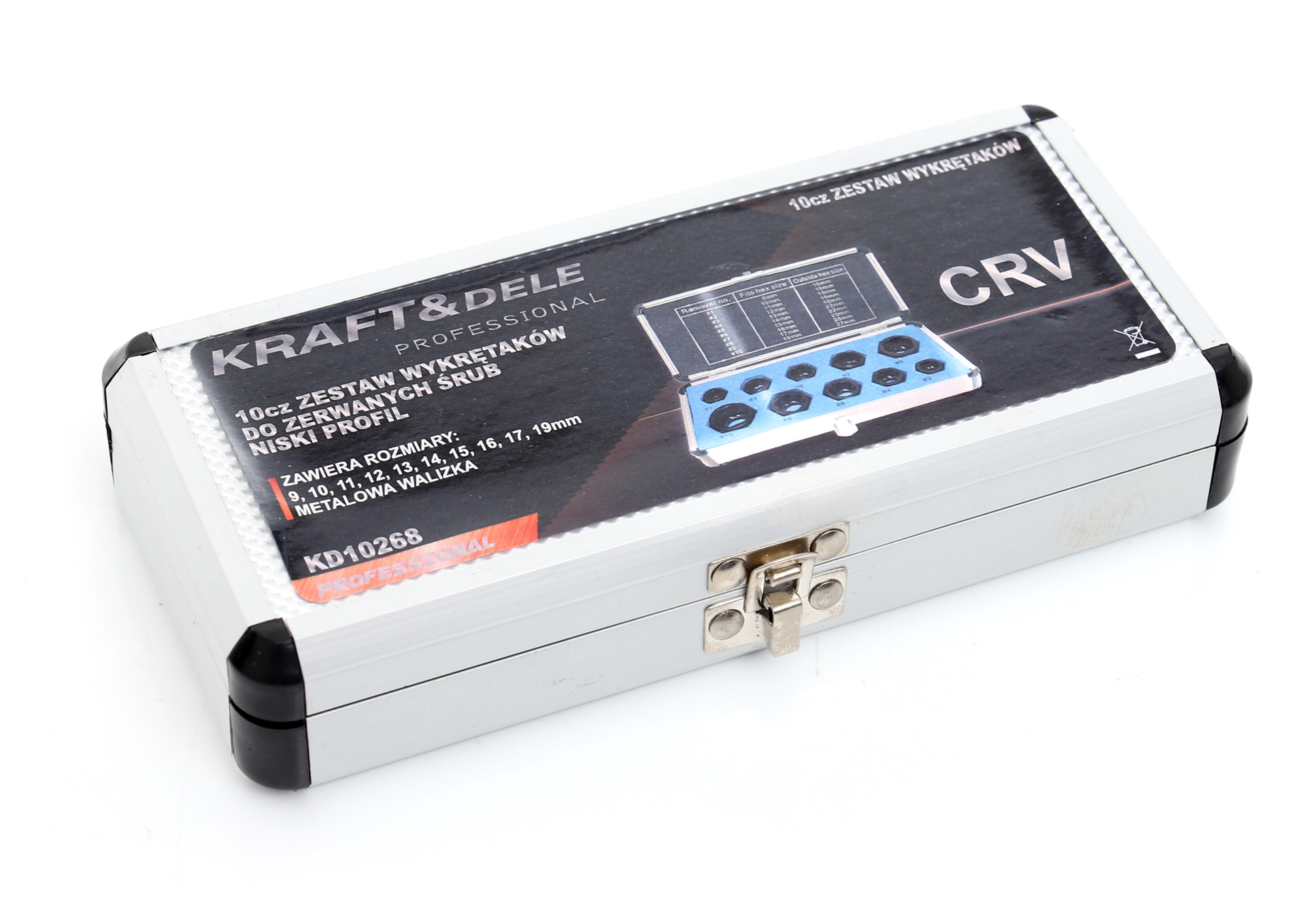 Set vsebuje izvlečke v 10 velikostih: 9, 10, 11, 12, 13, 14, 15, 16, 17 in 19 mm.