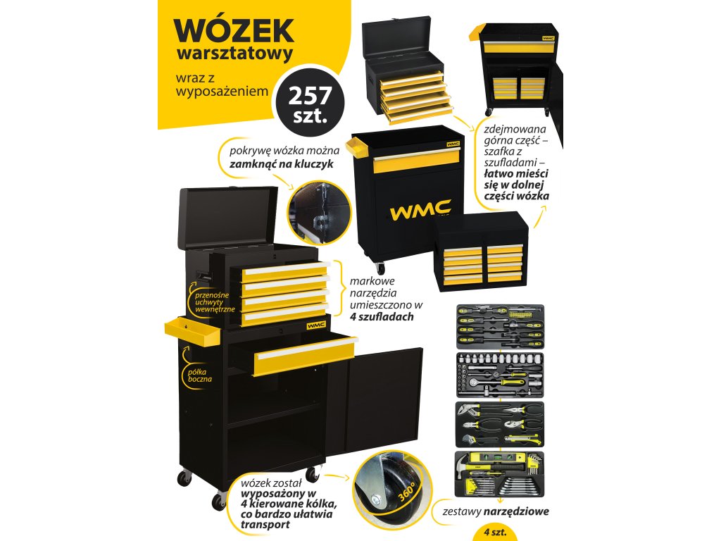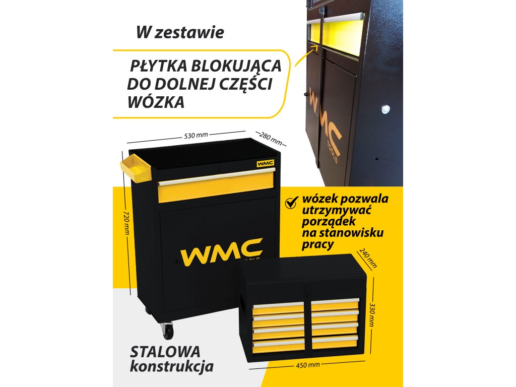 WMC delavniški voziček – omara za orodje z velikimi kolesi, s priborom