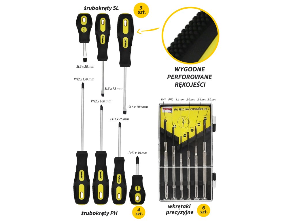 - Križni izvijači PH – 4 kosi: 2x38 mm, 1x75 mm, 2x100 mm, 2x150 mm