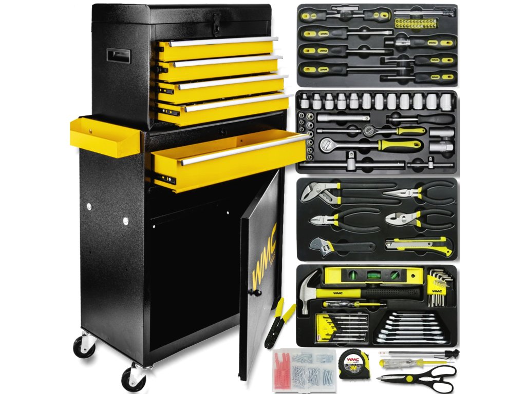 Profesionalna omara za orodje WMC Tools je nepogrešljiv dodatek vsake garaže, delavnice ali servisa. Do 257 kosov v kompletu – pripravljeno za uporabo takoj po odpiranju!