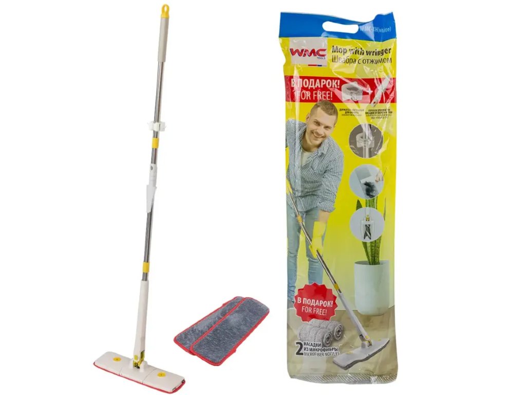 ➡️ Podlahovni mop WMC z ožemalnim mehanizmom tipa metuljček je nepogrešljiv v vsakem gospodinjstvu — primeren je tako za vsakodnevno čiščenje kot za temeljito čiščenje.
