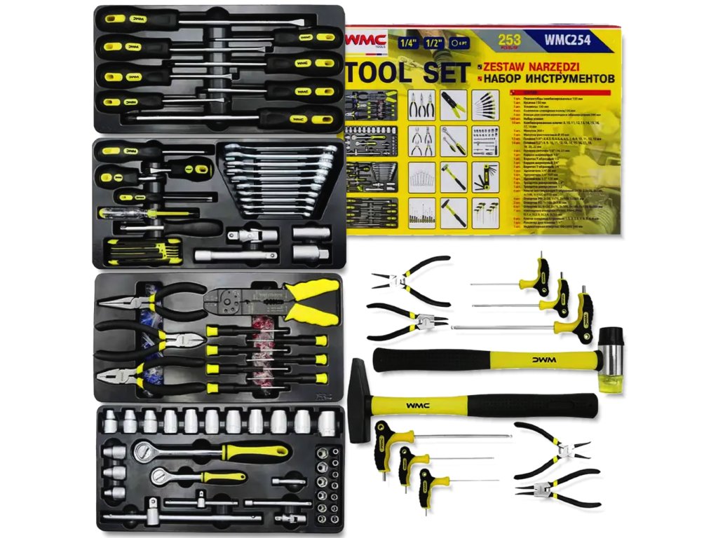 WMC Velik komplet orodja 253 kosov – ključi, nasadni ključi, klešče, kladiva