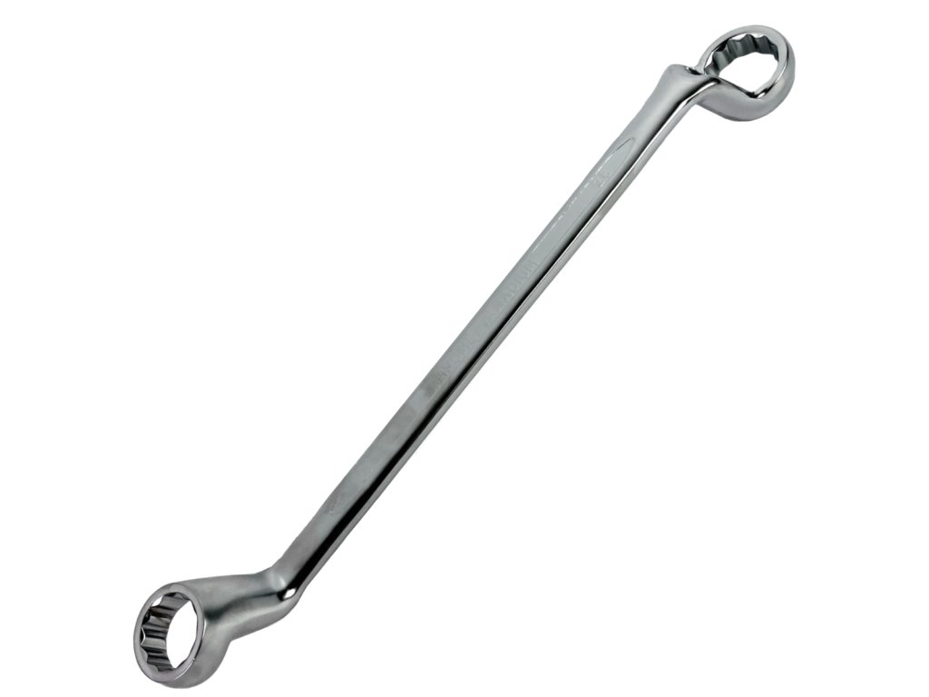 Ukrivljen obročni ključ 25 x 28 mm, 75°, Cr-V